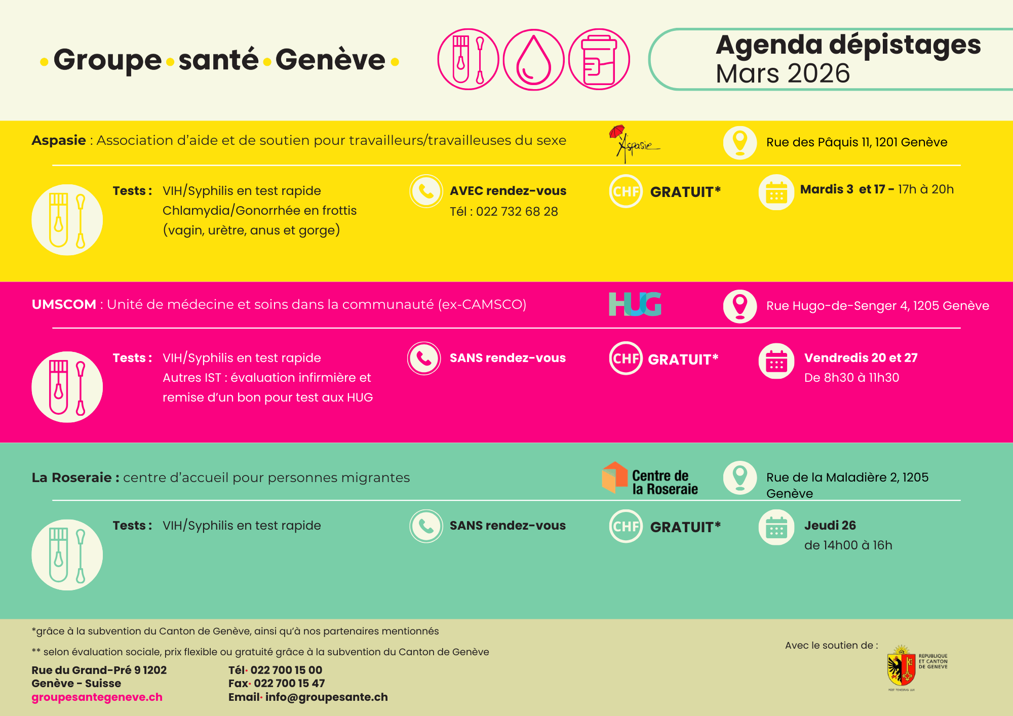 Agenda dépistage du mois